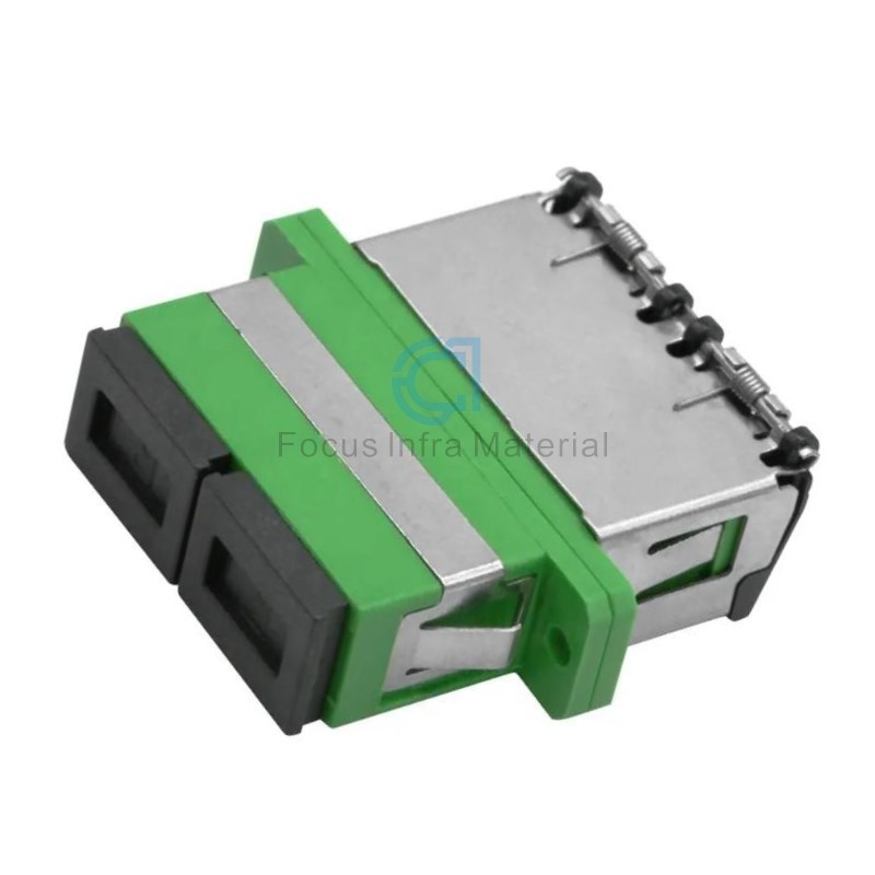 Focus Infra's Fiber Optical Adapter Metal Adapter SC APC SM Duplex Coupler is used for Single Mode Fiber Connection. The "SC" connector is a standard square connector, using engineering plastics, which has the advantages of high temperature resistance and not easy to oxidize. The optical interface on the transmission equipment side generally uses an SC connector. The Fiber Optic Coupler is a device for detachable (movable) connection between an optical fiber and an optical fiber.