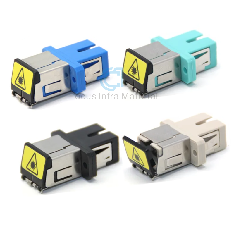 Focus Infra's Fiber Optical Adapter Metal Adapter SC APC SM Simplex Coupler is used for Single Mode Fiber Connection. The "SC" connector is a standard square connector, using engineering plastics, which has the advantages of high temperature resistance and not easy to oxidize. The optical interface on the transmission equipment side generally uses an SC connector. The Fiber Optic Coupler is a device for detachable (movable) connection between an optical fiber and an optical fiber.