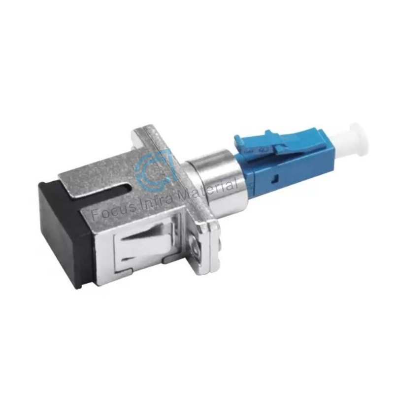 Focus Infra's Fiber Optical Adapter Metal Adapter SC APC SM Simplex Coupler is used for Single Mode Fiber Connection. The "SC" connector is a standard square connector, using engineering plastics, which has the advantages of high temperature resistance and not easy to oxidize. The optical interface on the transmission equipment side generally uses an SC connector. The Fiber Optic Coupler is a device for detachable (movable) connection between an optical fiber and an optical fiber.